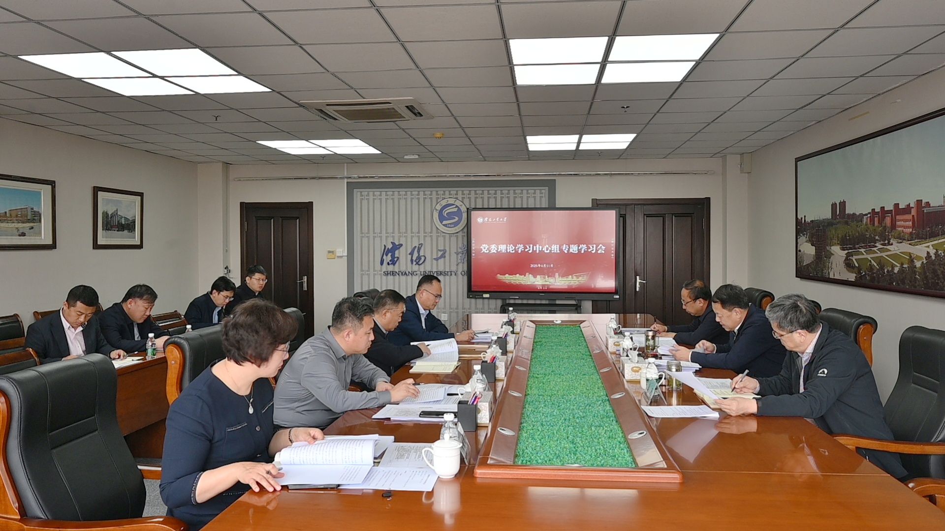 会上,贾玉明领学习近平总书记在中共中央政治局第十九次集体学习时的重要讲话精神,传达全省市厅级主要领导干部学习贯彻习近平总书记在辽宁考察时的重要讲话精神专题研讨班精神;党委副书记、校长张珂领学习近平总书记重要文章《朝着建成科技强国的宏伟目标奋勇前进》,传达全省科技工作会议精神;党委常委、副校长王彪传达全国高校毕业生等青年就业创业工作视频会议精神,领学中共中央办公厅、国务院办公厅关于加快构建普通高等学校毕业生高质量就业服务体系的意见。