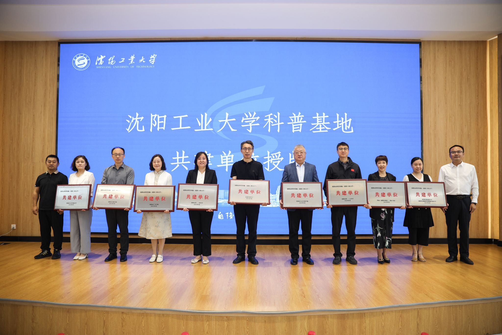 仪式上,鞠楠、赵宇为国产高清在线精品一区二区三区授予沈阳市“先进装备制造教育科普基地”和“物理科普基地”牌匾。