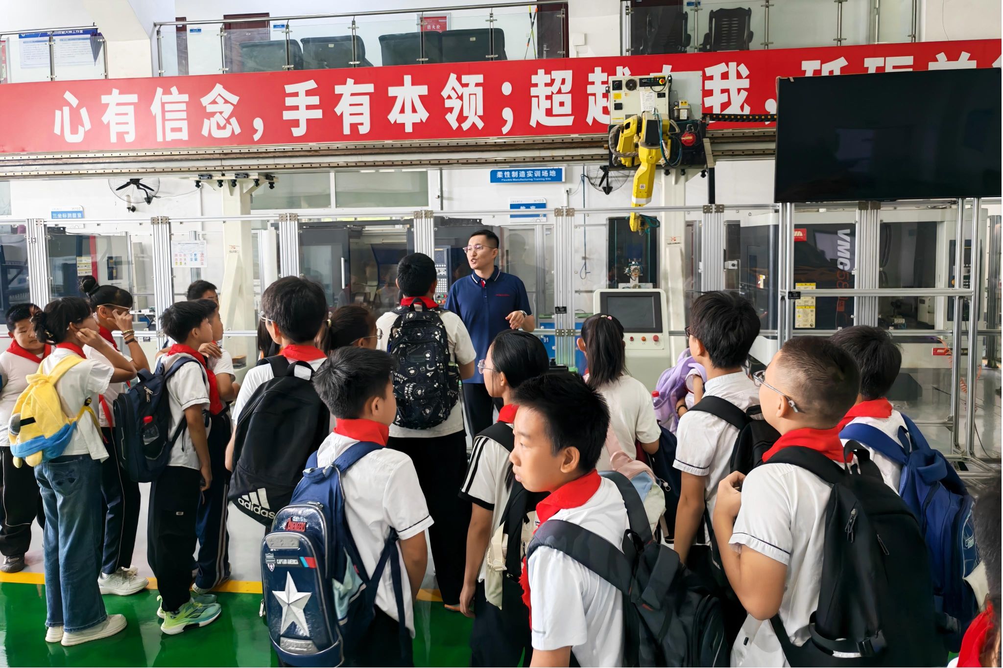 授牌仪式后,首届科普嘉年华开启序幕,物理科普基地负责人国安邦和先进装备制造教育科普基地负责人倪天予分别介绍了基地的建设情况,中小学生代表走进物理实验教学中心和工程实训中心,亲身体验“光影之美”“工业机器人演示”等互动项目,在沉浸式实践中感受科学的魅力与创新的力量。